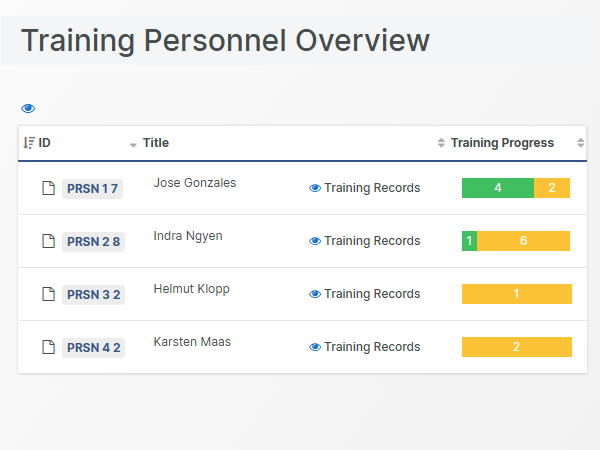 Sie sehen sofort, wer seine Schulung abgeschlossen hat, wer gerade dabei ist und wer überfällig ist.