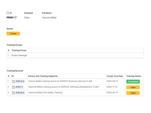 Von Schulungsaktivitäten und -unterlagen bis hin zu Lebensläufen (CVs) und Zertifizierungen ist alles mit dem Profil jedes Mitarbeiters verknüpft und diesem